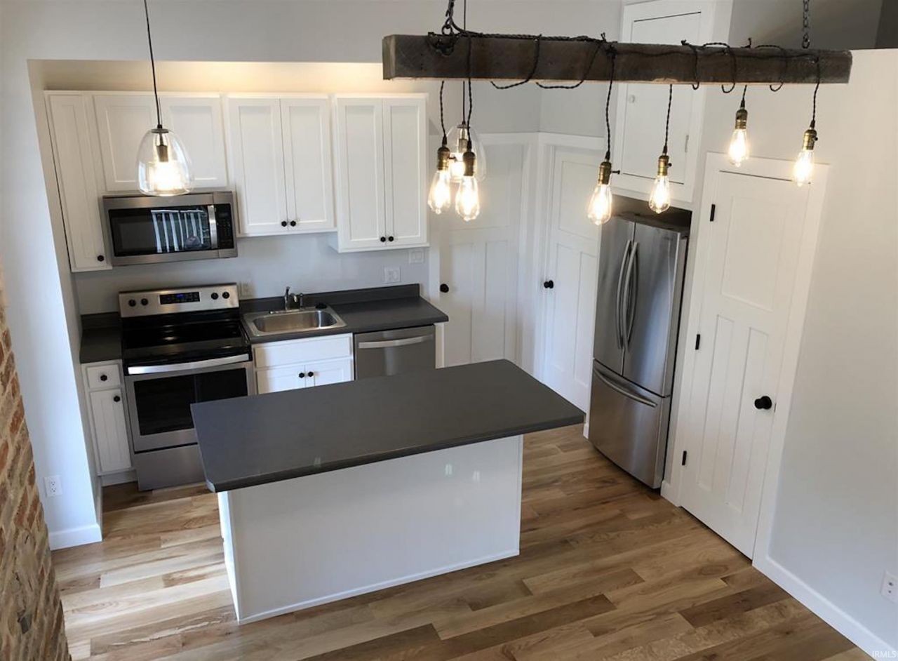 Completely renovated historic five unit apartment building in 2018. It has been rebuilt from the foundation to the roof. This building features tall, 10 ft+ ceilings, large open living/dining/cooking spaces, upgraded stainless steel appliances, clothes washer & dryer in each unit. This upper level one bedroom, with an office has an open floor plan with vaulted ceilings in the kitchen/living space, a covered front porch, and includes a washer/dryer in the unit. Say goodbye to laundromats! Close to downtown, B-Line, Bloomingfoods Market, Bloomington Farmers Market, and more. Live close to it all in a turn of the century building, with modern amenities and convenience! This unit is on the lower west side of the building.